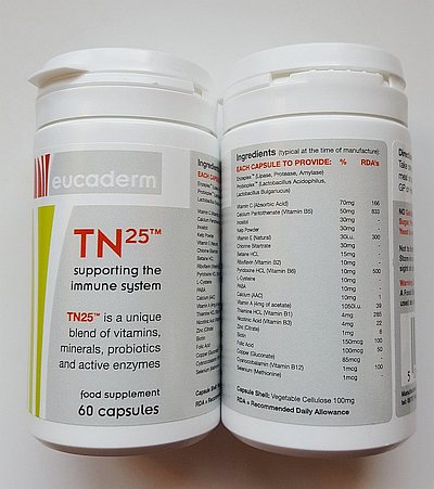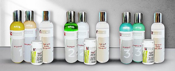 The key to Eucaderm hair care is boosting the immune system using the Live Enzyme and Vitamin supplement TN25.