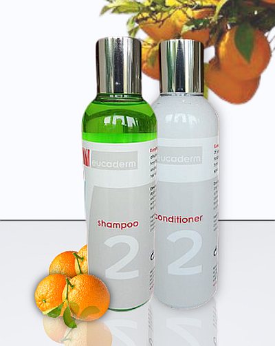It was found that the natural antiseptic qualities of the oils worked wonderfully on the scalp and gave the hair a beautiful shine. More importantly, it was not necessary to use synthetic perfumes to create a “nice smell”. The natural citrus fragrance was all that was needed, so there was less risk of hypo-allergenic responses. This was the beginning of the Eucaderm Natural Hair and Scalp Care Products
